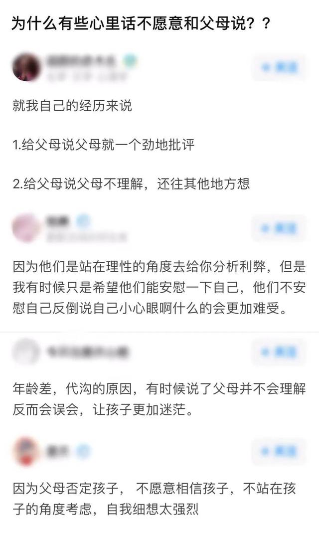 知乎上有个问题:为什么有些心里话不愿意和父母沟通?