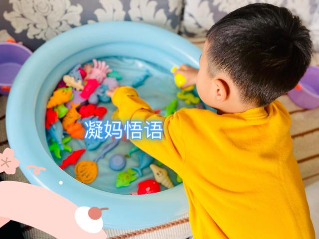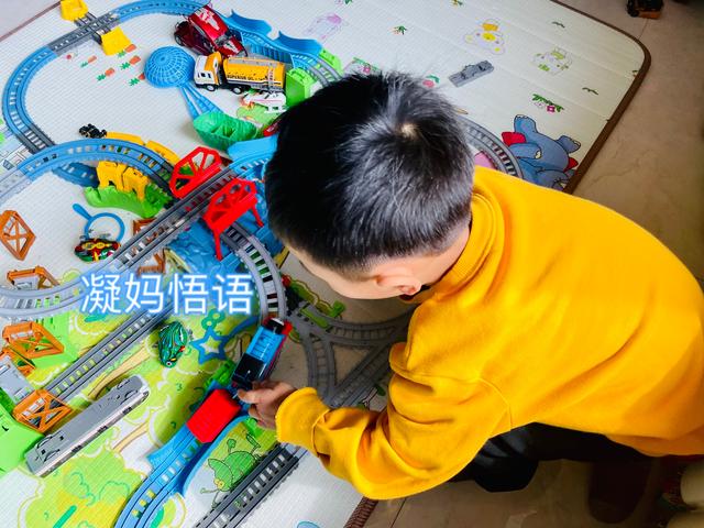二宝有很多玩具,像火车轨道、太空沙、磁力片、磁力棒、拼图、钓鱼玩具、各种玩偶等等, 陪着他玩各种玩具,经常换换花样,他有新鲜感,就会饶有兴致。