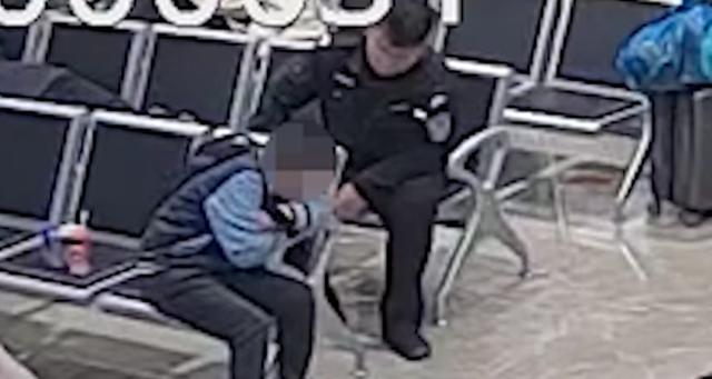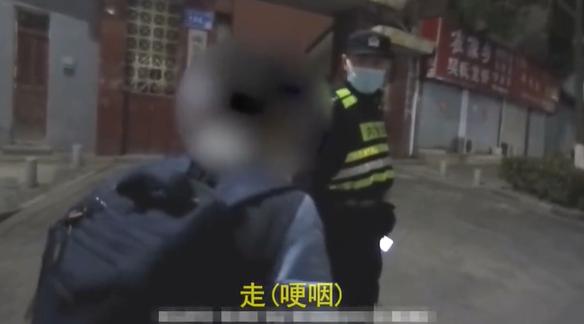 民警拉着男孩往派出所走