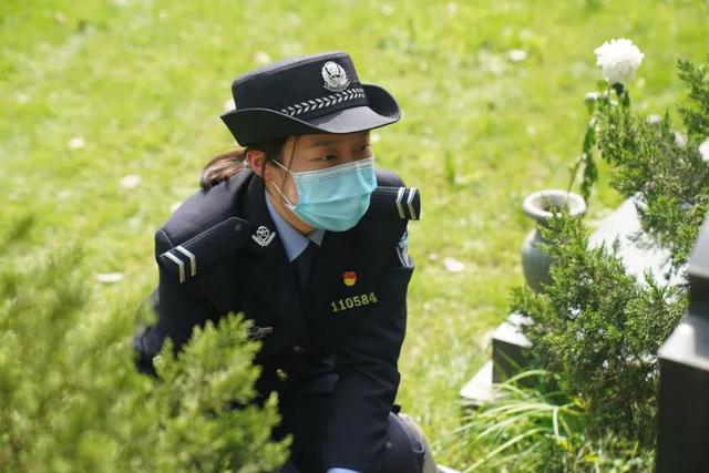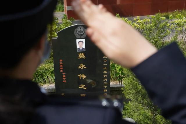 3月30日清明节前夕,杭州南山陵园,身着制服的莫智颖在一座墓碑前缓缓蹲下,将一束菊花摆在碑前,之后轻轻抚了上面的照片。