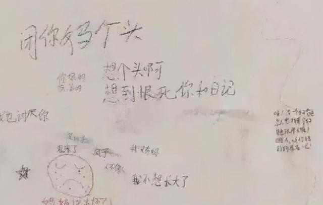 此前,网上有一组孩子写的“心声墙”,上面都是孩子的心里话,这些话不敢对父母说,只好自己默默写在墙上。
