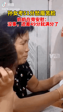孙女考试考了51分,不及格,她不慌不忙,面带微笑,一直努力安慰道: