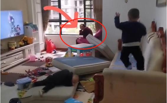 也有的父母选择坐在一旁,双手一摊,与世无争,干脆淡定围观......