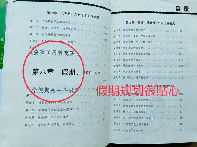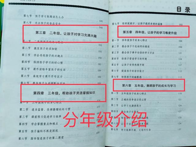 书中根据孩子的成长学年划分,每个年级都有独立的版块,告诉家长,孩子处在什么水平,有什么变化,沟通需要注意什么?包括假期如何度过,都有详细的介绍。