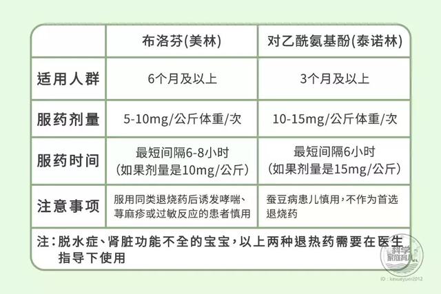 当娃腋温高于38.2°C,并已经出现不舒服、情绪低落等状况的时候,推荐使用布洛芬(如:美林)或对乙酰氨基酚(如:泰诺林)成分的儿童专用退热药。