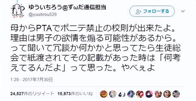 “因为臆测马尾会让中学男生感到性奋,所以禁止女生梳马尾,这对男性和女性都非常失礼。”