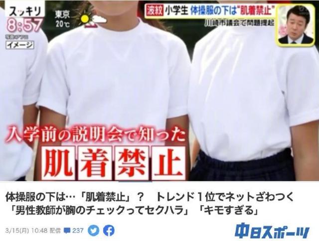 日本大多数学校都规定女孩必须穿白色内衣——为了防止内衣颜色透出来,让别人看到。
