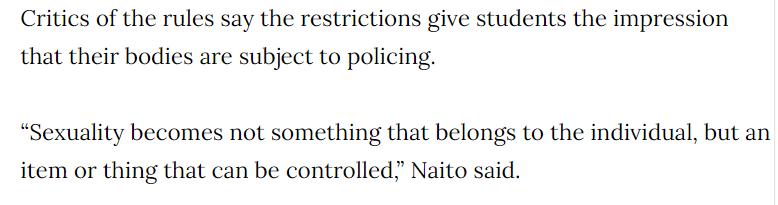 “这些规定,给学生的印象就是他们的身体受到监管。”